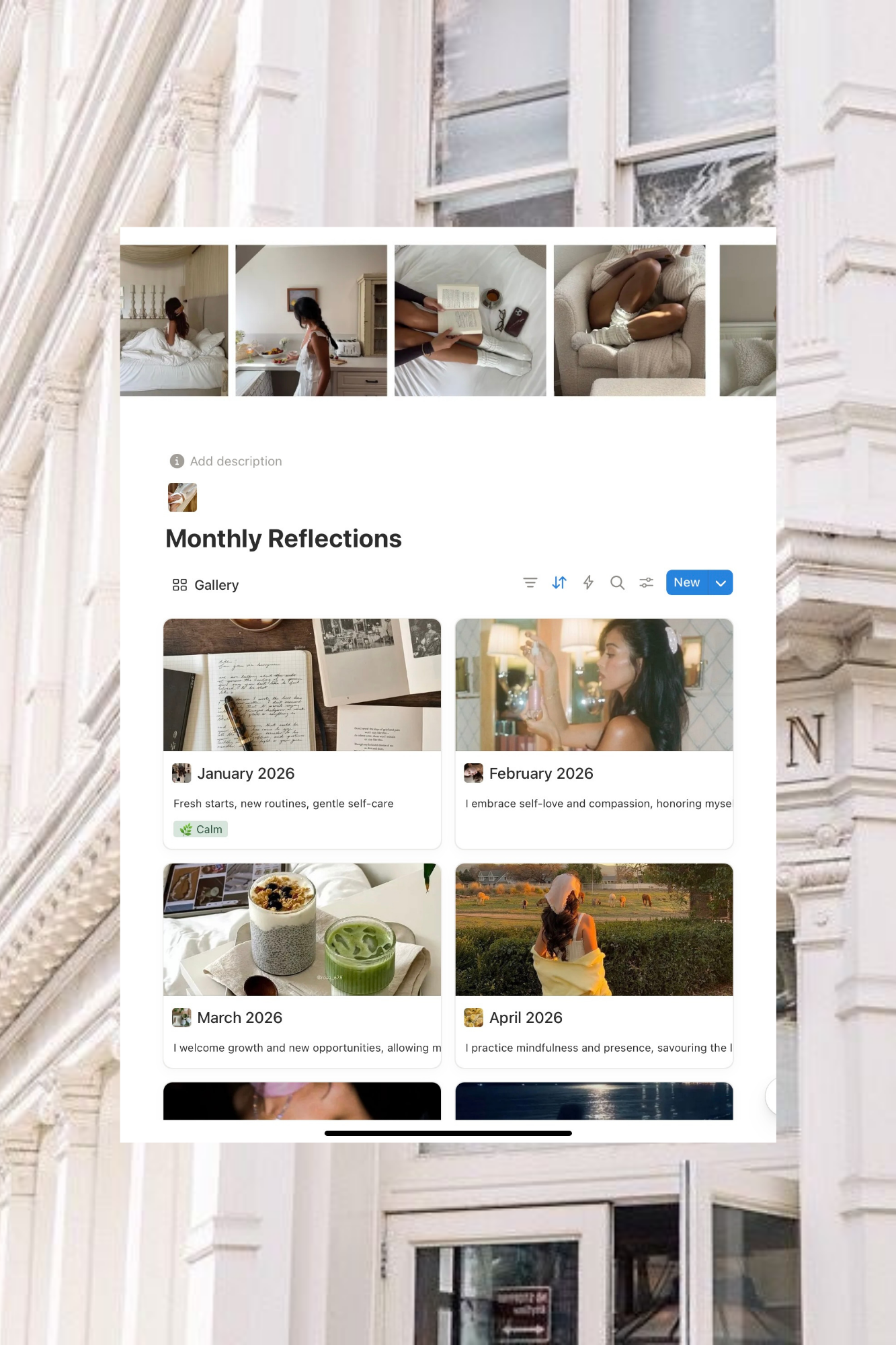 The It Girl Journal 2026 is a soft, structured Notion journal designed to help you slow down, reflect daily, and stay consistent with your goals — without overthinking or complicated systems.