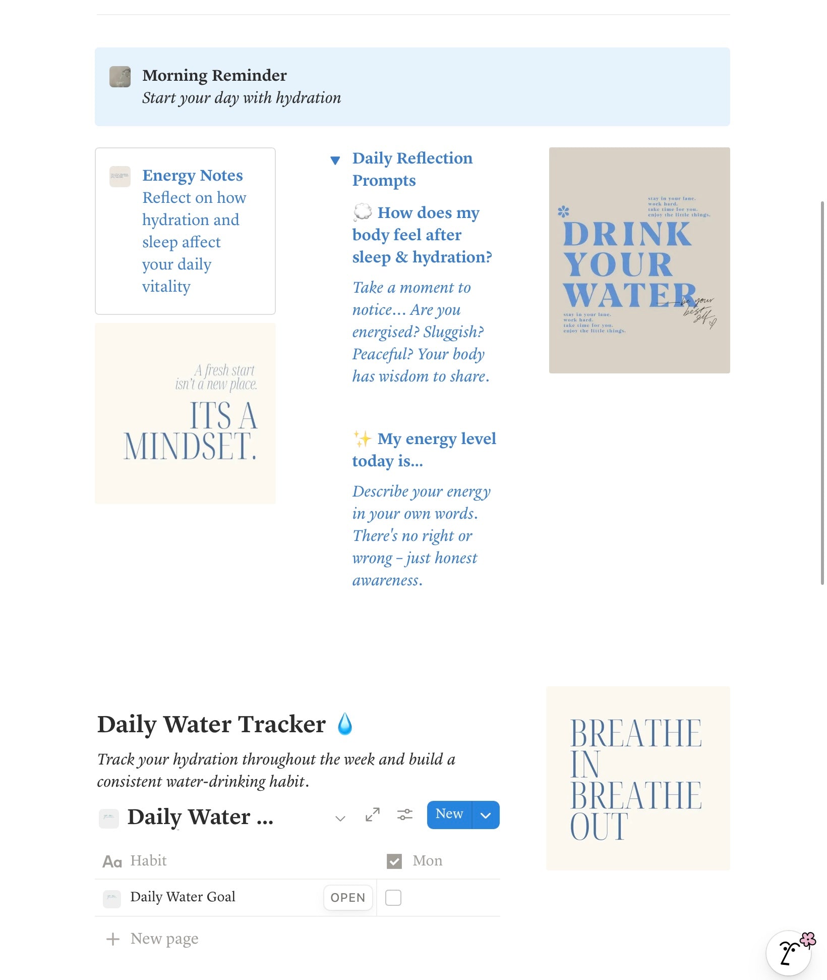 - Sleep & Sip Tracker: Keep track of your hydration and sleep habits to feel rested, energised, and glowing.